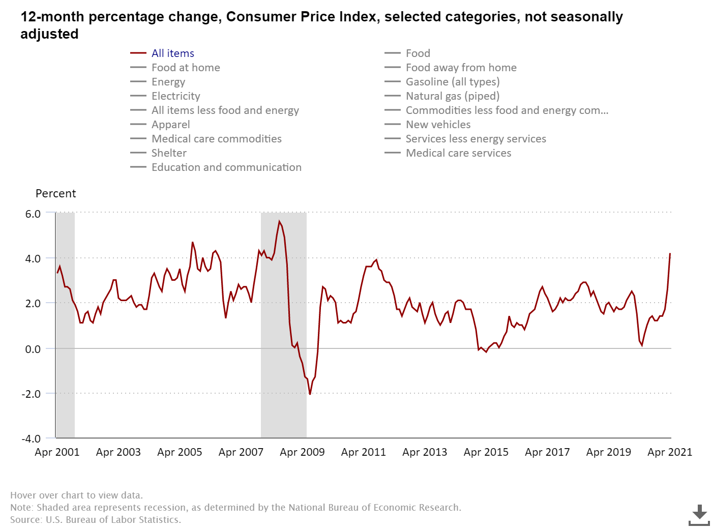 Consumer price inflation increased by 0.8% from March to April, the largest increase since June 2009. It increased by 4.2% year over year, the highest since September of 2008. Core inflation is up 3% year over year. Experts blame supply chain challenges and last spring’s weak readings and believe this inflation is short-term and will settle down in the coming months. Housing has taken on the largest rate of inflation at 18% (nationally) year over year. Consumers call it appreciation and economists call it inflation.